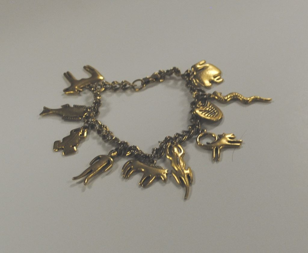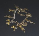 Lady's Yellow Metal Indian Assorted Charm Bracelet. Consist of ten (10) charms: fish, birds, snake, lizard, dog, man, frog, and horse. Charms are attached to a double link 7 3/4" bracelet. 19.84 DWT TGW Lady's Yellow Metal Indian Assorted Charm Bracelet. Consist of ten (10) charms: fish, birds, snake, lizard, dog, man, frog, and horse. Charms are attached to a double link 7 3/4" bracelet. 19.84 DWT TGW