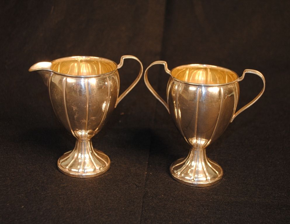 Sterling Sugar & Creamer, Marked weighted on bottom, 4 1/2 h Sterling Sugar & Creamer, Marked weighted on bottom, 4 1/2 h