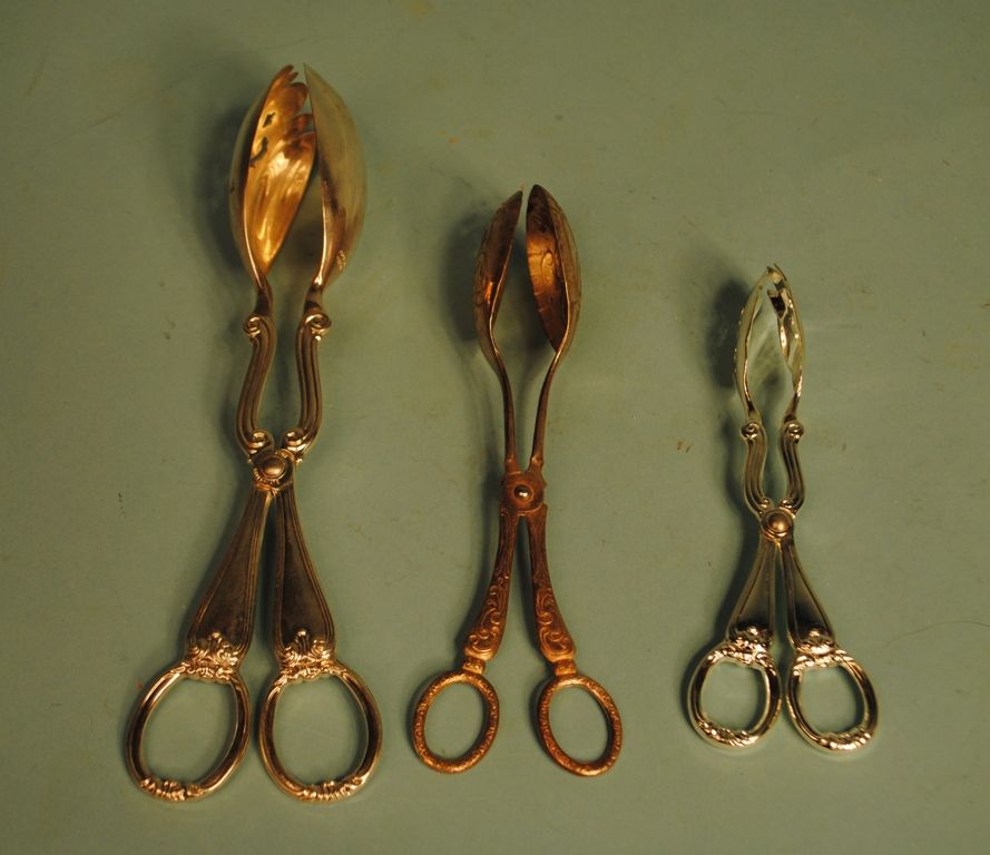 3 Silverplate Tongs, one Gorham Heritage 3 Silverplate Tongs, one Gorham Heritage