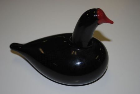 A hand blown Iittala Glass bird designed by the renowned Finnish glass artist, Oiva Toikka. Signed "O. Toikka, Nuutajarvi, IT." 5"h, 6.5"w A hand blown Iittala Glass bird designed by the renowned Finnish glass artist, Oiva Toikka. Signed "O. Toikka, Nuutajarvi, IT." 5"h, 6.5"w