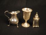 400 Sterling Creamer, Sterling Cordial and Silverplate Shaker