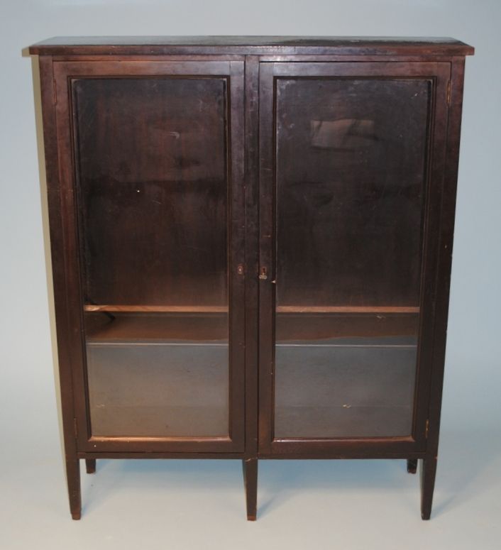 19th century mission style bookcase two glass doors with two interior shelves 43 1/2"w 13 1/2"d 53 3/4" h. 19th century mission style bookcase two glass doors with two interior shelves 43 1/2"w 13 1/2"d 53 3/4" h.