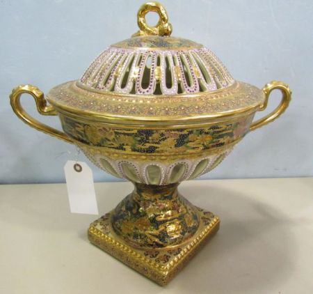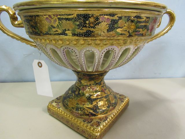 242 Satsuma Hand Painted Covered Compote