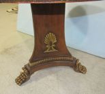 modern reproduction, multi grained design, Mahogany Finish, claw feet, 30"h., 40"dia. modern reproduction, multi grained design, Mahogany Finish, claw feet, 30"h., 40"dia.