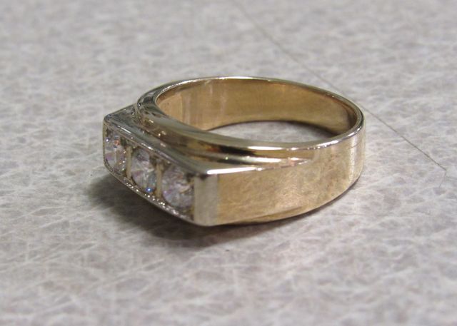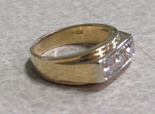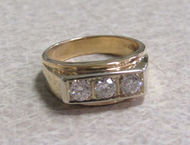 303 Gentleman's Three Diamond 14K Yellow Gold Ring