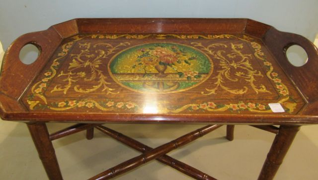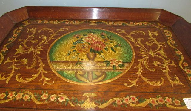 Hand painted inlay design, 20"h., 30"w. Hand painted inlay design, 20"h., 30"w.