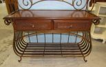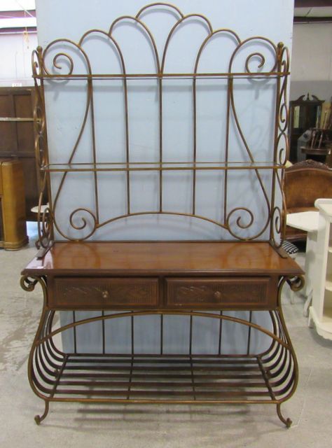 two glass shelves, two drawers. Measures 77"h., 48"w. two glass shelves, two drawers. Measures 77"h., 48"w.