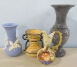 hand painted ceramic vase marked Japan, 5"h, Marble Etched Flower Vase, 10"h., Gold Hand Painted Porcelain Vase, 7"h., Blue and White 7"h Vase. hand painted ceramic vase marked Japan, 5"h, Marble Etched Flower Vase, 10"h., Gold Hand Painted Porcelain Vase, 7"h., Blue and White 7"h Vase.