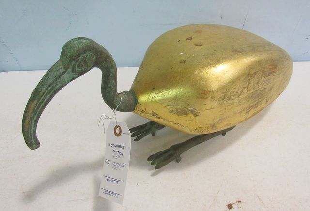 Gold painted wood body, Metal Head and Feet Design, Measures 21"w., 9 "h. Gold painted wood body, Metal Head and Feet Design, Measures 21"w., 9 "h.