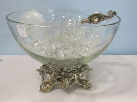 Ladle and 12 cups, bowl 13"dia. Ladle and 12 cups, bowl 13"dia.