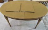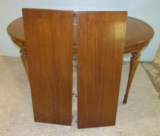 two leaves, table pads, legs can be removed, without leaves table is 30"h., 58"w. two leaves, table pads, legs can be removed, without leaves table is 30"h., 58"w.
