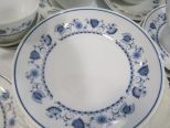 8 salad plates, 4 Dinner Plates, 8 Dessert plates, 8 Saucers, 8 Cups, Creamer, Tea pot, tureen, serving bowl, 8 bowls, gravy boat, Two serving platters. 8 salad plates, 4 Dinner Plates, 8 Dessert plates, 8 Saucers, 8 Cups, Creamer, Tea pot, tureen, serving bowl, 8 bowls, gravy boat, Two serving platters.