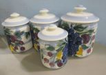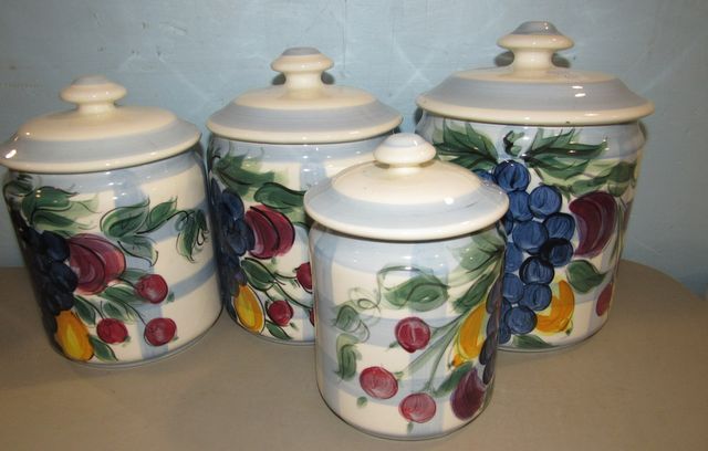 four covered spice jars. tallest is 10"h. four covered spice jars. tallest is 10"h.