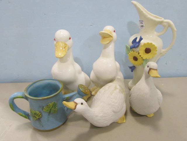 four ceramic ducks, Norleans pitcher, and flower vase. four ceramic ducks, Norleans pitcher, and flower vase.