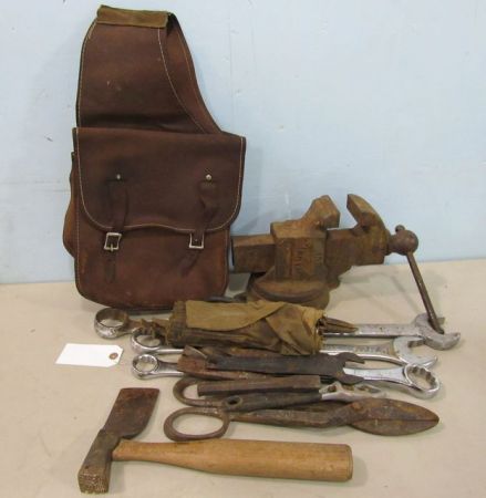 Wrenches, Rock Island Vise, Hammer, Drill, Bits, and a saddle bag. Wrenches, Rock Island Vise, Hammer, Drill, Bits, and a saddle bag.