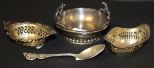 232 Two Sterling Nut Dishes, Sterling Souvenir Spoon James Tufts Quadruple Plate Dish