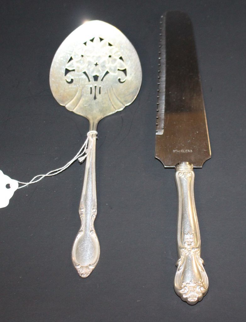 245 Rogers Silverplate Tomato Server, Silverplate Cake Knife (Stainless Blade)