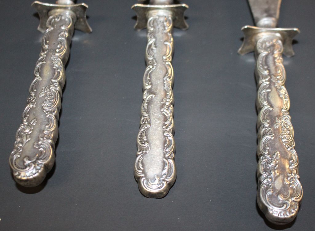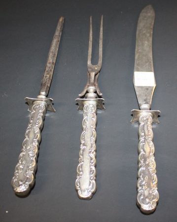 Three Piece Silverplate Carving Set with Elaborate Handles Three Piece Silverplate Carving Set with Elaborate Handles