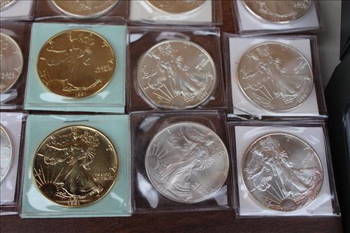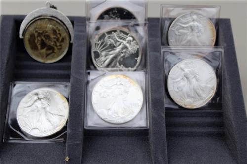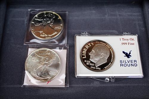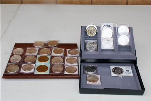 Antiques & Collectibles: Coca-Cola & Pepsi-Cola Coolers, Drive In Speakers on Stands, Parking Meters, Army Utility Light, 25 - 1 Oz Fine Silver American Silver Eagles, 1 Troy Oz .999 Fine Silver (Whitman), 1923 Peace Dollar, Art Deco Statue, Miniature Gas Pumps by Gilmore & Texaco, 1938 Bud Doll, Car Show Advertisers, Car-Snac Tin Picnic Basket, Wood Carved Mediterranean Style Cupboard, Wringer Washers, Large Trunk, "Don't Move" Light, Stop Light, Crofton Cast Skillet, Hand Painted Milk Cans, Lanterns, Wire Bike Basket, Miller Beer Electric Clock, Early Chrome Ford Hub Caps, Chevy/Ford Steering Wheels, Bullet Lights and MANY VINTAGE CAR PARTS; Quaker State & Wolf Head Oil Cans, First Aid Kits, Dashboard Bobble Heads, Graded Roger Clemens I Ken Griffey Jr. 2000 Cards, 1909 Havana Cigarette Card, VW Lamp, Die Cast Car & Trucks, Tonka Jeep, Revell '65 Chevelle Model, Eastwood Automobilia Lim Ed Trucks & Cars, Gulf Collector Series Airplane Bank, Banks, Metal Horse, Fisher Price Music Box Ferris Wheel, Large Brass Bullet Shell, Car Show Food Tray Items & Trays, Car Jacks, Car Radios, Train Track Accessories, Wood & Metal Ammo Boxes, Vtg Christmas & Etc...