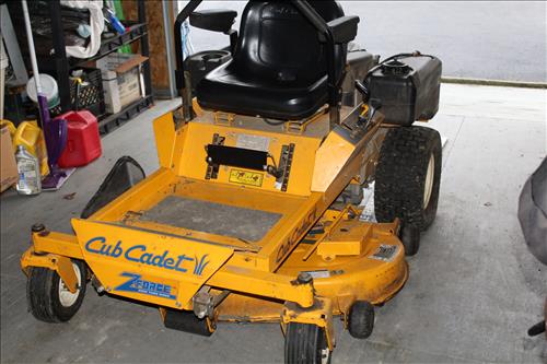 Equipment & Tools: Cub Cadet Zero Turn Rider - Z Force Series - 3.4 Hours Used 2 Times w/48" Mower (2019); Cub Cadet Z force w/44" Deck, John Deere X500 Tractor w/54" Deck, Craftsman Upright Air Compressor, Chicago 7000 Watt Generator, Schumacker Battery Charger, Tool Box With Drawers, Craftsman & 4 Cycle T430 Walk Behind Weed Trimmers, Yard Machine Push Mower, Garden Tools, Hose & Reels, Craftsman 22" 5 HP Snow Blower, B & D Blower, Large Lawn Roller, John Deere Tractor Umbrella, Hitches, 3-Stackable Tool Chests on Wheels, Craftsman: 12 Gal Wet/Dry Vac & 1.5 HP Air Compressor; Dremmel, Socket Sets, Werner Step Ladder, New Respirator Mask, Aluminum Loading Ramps, Shop Vacs, Karcher Electric Power Washer, Hand Tools: Craftsman Wrenches, Socket Sets, Pliers, Screw Drivers, etc; Jack Stands, Wheel Chocks, Gas Cans, Craftsman Metal Tool Box, 6" Bench Grinder, 50' Air Hose, Michelin 1.5 Ton Floor Jack, Emergency Car Kits, Battery Chargers, Angle Grinder, Tire Chains, Tarps, Folding Saw Horses, Shop Stool, Broom Heads - MIB, Shop Rags, Air Tools, Craftsman Buffers, Rachet Wrench Set & More.