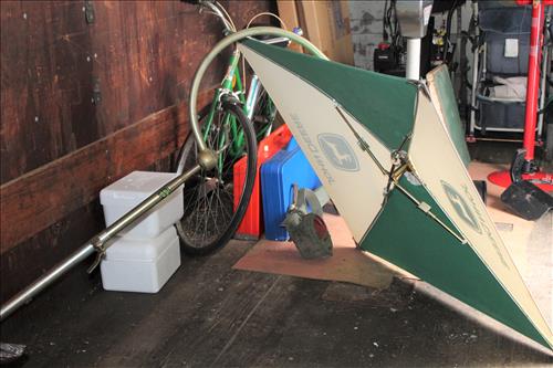 Household Items & Other Misc: Aluminum Haul Master Wheel Chair/Scooter Carrier for Hitch, 2 Portable Tables w/Benches, 10 x 10 Canopy, Jazzy Select Elite Power Chair, Pride Victory 9 Electric Scooter, Gas Grill & Tank, Plastic Shelving Units, Many Automotive & Cleaning Products, GTA Metal Detector, Nu Wave Induction Cook Top, 12 Volt Ceramic Heater, LED Barn Light, John Deere Maintenance Parts, Health-O-Meter Scale, Older Kenmore Freezer, 2 Seated Walkers, Honda Motorcycle Saddle Bags, Many Folding Chairs, Wood Slat Bar Stool Set, Dura-Heat 80,000 BTU Torpedo Heater, Large Mail Box, Tow Light Kits, Carton of Mobil 5W-20 Oil, Galvanized Tubs, Bird Feeders & Houses, All Pro 3 Speed Bicycle, Fishing Poles & Reels, Spot Light Bulbs & More....