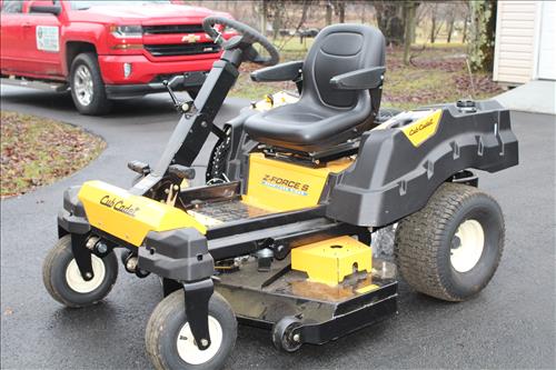 Equipment & Tools: Cub Cadet Zero Turn Rider - Z Force Series - 3.4 Hours Used 2 Times w/48" Mower (2019); Cub Cadet Z force w/44" Deck, John Deere X500 Tractor w/54" Deck, Craftsman Upright Air Compressor, Chicago 7000 Watt Generator, Schumacker Battery Charger, Tool Box With Drawers, Craftsman &...