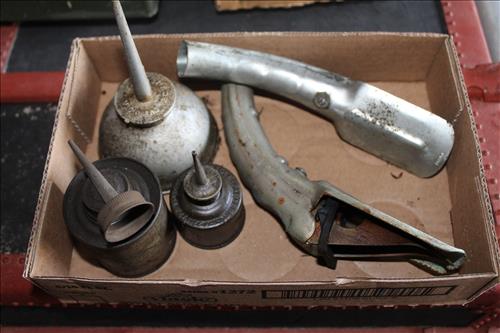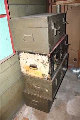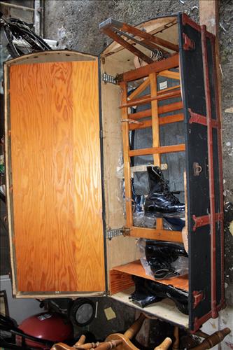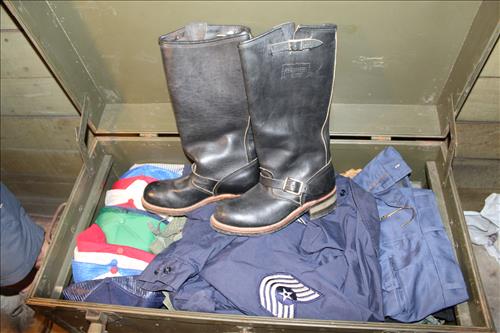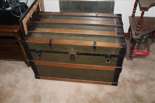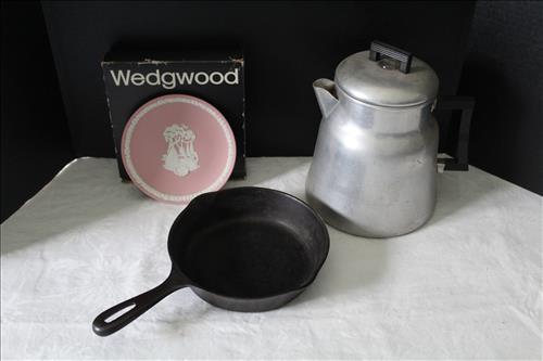 Antiques & Collectibles: 1904 P & S Mfg "Holds All" Wardrobe Trunk, Paddle Butter Churn, Many Crocks - Some w/Lids, Enamel Wash Bucket, J. C. Higgins & Coleman Coolers, Wringer Maytag Washer, Wolf's Head Adv Can, Torch, Early Wall Bell, Lantern, CB's & Antennas, Ringer Horse Shoes, Longaberger Basket, Wedgwood Jasper Glasses & Carrier & Plate; Oil Lamp, Carnival Glass Pitcher, Pink Depression, Ceramic Lighted & Musical Christmas Tree, Wendell August Forge: Vase, Pine Cone Coasters, Navy Dish, Air Force Ornament, Clock, Trivets, Photo Album, Bronze Cross & Pen Holder, GE Tray & More; Arthur Armour Items, GE Advertising: Train in Case, Pins, Tie Clasps, Key Chains, Watch, Clock & Pen Holder; Military Buttons, Sterling Silver Baby Bib Holder, Cross Pens, Remington Shaver, baby Shoes, MIB Colibri Pocket Watch w/Fob, Buck & Gerber Knives, Men's Watches: Seiko, Mickey Mouse & ETC; Lighters: Vulcan, Zippo, Colibri, Evans & Ronson; Military Hats, Army: Blanket, Pants & Undergarments; U.S. Air Force: Shirts & Jackets w/Patches, Helmet, Collared Shirts, Flyers Coveralls & More; Army Trunks, Leather Suit Case, Boy Scout Shirt, Sportcraft Table Soccer, Large Blanket Box, Coleman Camp Stove, Menzer Dairy Crate, Milk Can, Child's Gateway Sewing Machine, Nail Bucket, Mason Jars, Copper Boiler, Ammo Boxes, Oil Cans, Hand Stitched Linens, Chenille Baby Blanket, Lava Lamp, Stetson Hats, Cowboy Boots, Flat Top Trunk, Roto-Wheel, Wood Pulley, Wood African Mask, Sewing Box, Singer Sewing Machine, Am Flyer Lines Train, Hafner's Train, Cast Skillet, Silver Plate: Server, Punch Bowl & Cups & Candle Holders; Metal Blade Lasko Fan, 1901 Framed "Our Martyrs" & ETC...