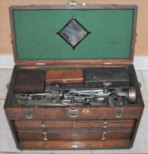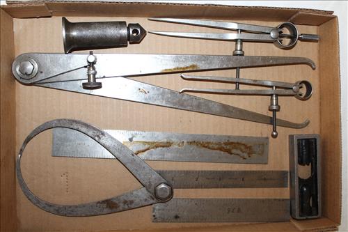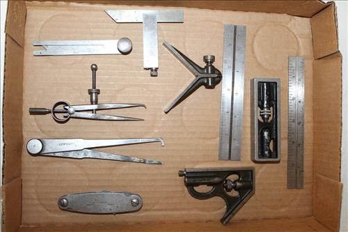 Antiques & Collectibles:Machinist Box, Machinist Tools: Micrometers, Gauges, Calipers, Metal Rulers, Dial Indicators, Edge Finders, Squares & More; Large Copper "Buffalo" Fire Extinguisher, Crock w/Ears, 2 Satin Blue Fenton Lamps, Satin Blue Fenton: Vases, Plates, Fairy Lamps, Baskets, Candy Dishes, Bells, Candle Holders, Compote & Animals; CB & Early Handles/Mics, Enamel Collector Pins for NASCAR & Beer Companies, Red Pyrex Refrigerator Bowls, Pyrex w/Various Patterns (Delphite Gold Leaf), Green Glass Refrigerator Bowl, Rolling Pin, Early Color Fiesta Ware: Pitcher, Serving Bowls, Gravy Boat, Berry Bowls, S & P & More; SRU Campus Buildings Wood Replicas, Ingraham Stop Watch, Mother of Pearl Fountain Pen Set, Local Beer Chips, Lifetime Sauce Pans, Griswold Griddle #9, Wendall August Forge:...