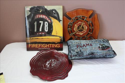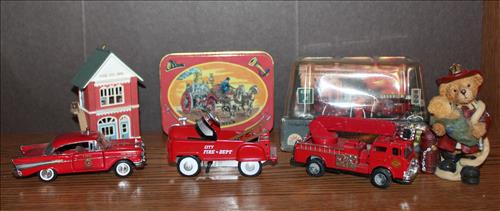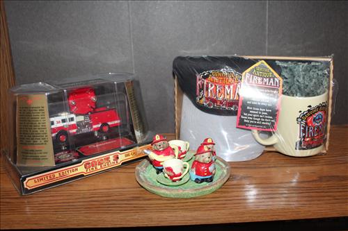 Items of Interest:Fireman Collector Items: Weathervane, Clocks, Metal Art, Pillows & Patches; Fireman Helmet Bank (SRVFD), Diecast Fire Chief Cars, Fire Trucks & Engines; 2 Jim Beam Fire Chief's Helmet Decanters, Massive Collection of Legos: Harry Potter, Electric Train Set, Wright Plane, Sports, Bionicle & Many Individual Kits, NASCAR: Monopoly Game, Flags, Golf Balls, Kellogg's & Wheaties Boxes, Coke Bottles & Budweiser Cans; Dale Earnhardt & D.E. Jr - Ornaments, Playing Cards, Mini Jewelry Box, Phone, Hats, Boyd Bear, Plaque, Pictures, Belt Buckles & More.
