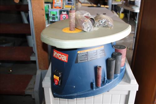 Household & Misc:Shark Professional Vacuum, Emerson Microwave, Farberware Convection Oven, Rival Food Slicer, Food Saver, Oak Side Stand w/ Lamp, Recliner, Couch w/ Lounge, Samsung TV, Sony DVD Player & Speaker, TV Stand, Large Side Stand w/Slate Top, Large Amount of Home & Garden Party Stoneware, Sears Kenmore Sewing Machine, Full Embroidered Mini Quilt Set, Queen Fall Quilt Set, Framed Beveled Mirror, Bushnell Binoculars, Tommy Hilfiger Men's Wallet, Vinyl Gun Case & Leather Holster on Belt, Paper Shredder, Brass Candlestick Holders, Bird Lamp, The Bird Feeder Book, Kodak Easy Share Z 1015 IS Camera, Board Games, Sea Shell Items, Wine Cork Art, Hockey Books, Stemware, B & D Home Improvement Books, Cast Skillets, Pots & Pans, Roasters, Crock Pots, Flatware, Tupperware, Table Display Toothpick Holder & Bottle Opener, Cleaning Supplies, Dalmatian Statue, Holiday Dishes, Corning Ware Casserole Dishes - Blue Cornflower, 6' Area Rug, Chenille Bed Spread, Children's Snack Sets, Snow Globe Village, Disney Babies Musical Mobile, Plastic Vititar Streaming Video Drones, Paintings: Matted Print "Members Only" by Cynthie Fisher; "First Signs of Spring" by Jimmy Bashline; Schauer Battery Charger, Ryobi Spindle Sander, Davidson 6' Step Ladder, 4 Gallon Shop Vac, Elite Fitness Inversion Table, Skeet Shooter, Stainless Steel Coleman Cooler, Coleman Lantern, Cake Icing Decorator, Banded Bowl, Metal Yard Art, Many Tubs of Decorations: Christmas, Thanksgiving Halloween, Fall & Easter; Dell Monitor, 12 Gauge Shot Gun Shells, 38 Special Bullets & A LOT More.
