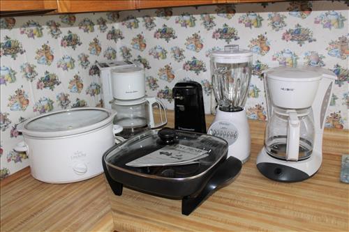 Household & Misc: Kenmore Electric Dryer, Commercial Rugs, 22" RCA Flat Screen TV, Step Stool Chair, Illuminated Christmas Figures, Igloo Cooler, Mary Kay Travel Bag, Golf Clubs, Lamps, Floral Baskets, Wall Clocks, Towels & Linens, Computer Monitor, CD Player, Portable Radios, Pressure Cooker, Bug-A-Salt Gun, Coffee Makers, Crock Pot, Blender, Can Opener, Electric Skillet, George Foreman, Cast Lodge Skillet, Brothers Fax Machine, Cake Plate, Towels & Linens & More...