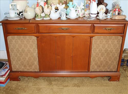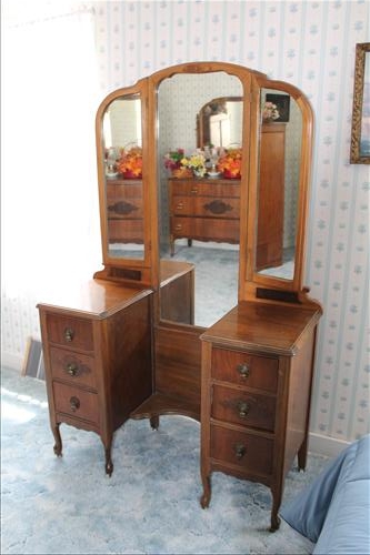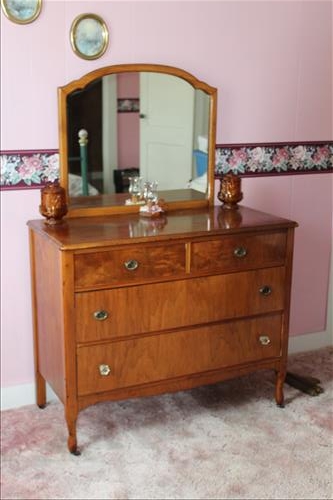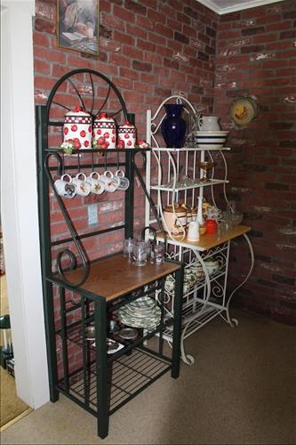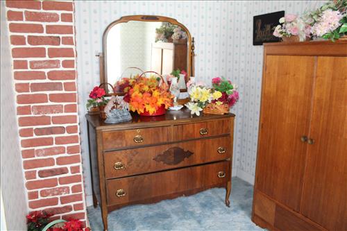 Furniture: Best Lift Chair, 8' Picnic Table w/Metal Base, Bakers Racks, China Cupboard, Kitchen Table w/4 Chairs, 2 Metal Full Size Beds, Vintage 2 on 2 Dressers w/Mirrors, 3 Oak T-Back Chairs, Vanity w/Folding Mirror, Cedar Lined Wardrobe, Rocking Chair, Recliner, Hid-A-Bed, Sears Solid State Console Stereo, Side Table, Danish Dressers, 2 Widdicomb Single Beds & ETC.