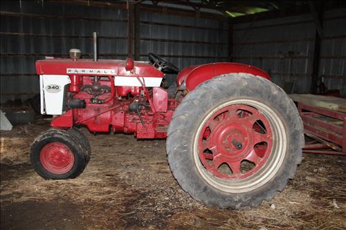Tools & Equipment: 1958 Farmall 340 Tractor Serial # 1088 SY, 3 Point 3 Bottom Plow, 5' Brush Hog, 8 ' Disc (needs work), Trailer/Wagon w/ Model A Ford Axle, Cement Mixer, Antique 2 Bottom Plow, Plow-Blades, Oil Barrel w/Pump, Yard Carts, Aluminum Extension & Step Ladders, Tire Chains, Galvanized Water Trough, Wheel Barrow, Misc Garden Tools, Vtg Log Splitter, Metal Tub, 10" Central Machinery Table Saw, 10" Compound Mitre Saw, 5 Speed Drill Press, Husky Framing Nailer, 7" Variable Speed Polisher/Sander, 1/2 Inch Electric Drill, Belt Sander, RotoZip, Craftsman Router, Step Stool, Reddy Heater Heater/Cooker, Electric Weed Eaters & Snow Buster, Multi Functional Power Tool, Sprayers, Gas Cans, Portable Power Pack, Dado Saw Set & More...