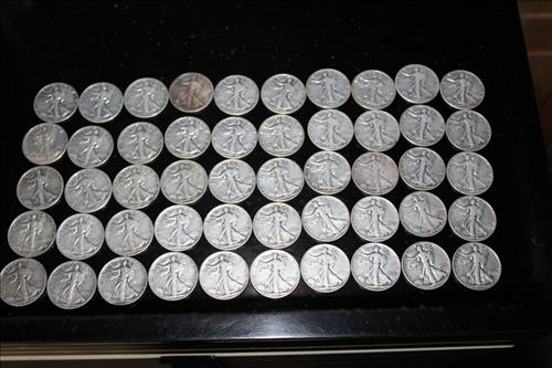 Antiques & Collectibles: 50+ Silver Walking Liberty Halves, Mercury Dimes, Sterling Silver: Salt & Pepper, Candlestick Holders, Small Coasters & More; Unusual New England Clock, Costume Jewelry, Roosters, Bromwell's Sifter, Refrigerator Dish, Collector Plates, Tea Pots, Wheaton Bottles, Crock Pitcher & Bowl, Coleman Lanterns & Propane Stove, Fenton Plate, Bells, Rooster Soup Tureen & Lamp, Hand Painted Bread Box, Mattel "Farmer in the Dell" Wind-Up Musical Toy, Verichron Westminster Chime Wall Clock, Wind-Up Steeple Daneker German Movement & Sessions China Clocks; Bradley Hubbard Iron Ornate Hanging Oil Lamp, Crocks, Iron Ice Tongs, 2 Iron Kettles, Footed Iron Pot, Copper Pan, Mountain Trails Camping Basket, Small Lane Cedar Box by Haney Furniture Co, Tawawa Cigar Box, Hand Carved Wood Box, Sewing Basket, Tramp Art Box, Open Hearth Baker's Paddle, Beaded Purse, Celluloid Manicure Set, Blue & White Sponge Italian Sponge Bowl, 1922 Montgomery Ward 50th Anniversary Catalog, Hummel Pictures, 6 Homco Metal Airplanes - 1975, Swingline Pencil Sharpener, Pottery Bowl, Marble Book Ends - Aztec & Girl Scout Symbol, Butler Globe, Purses, Silverplate: Poole, Reed & Barton & Early American; Tin Art: Owl, Giraffe & Tree; Linens, West Bend Percolator, Vtg Lounge Chairs & More