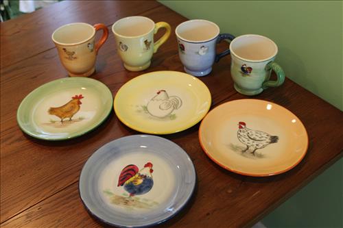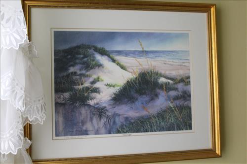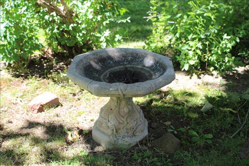 Household Items & Other Misc: Stainless Steel Deep Dish Frying Pan, Copper Bottom Revere Ware Pans,Rubbermaid Storage Bins, Coleman & Igloo Coolers, Harry & David Dishes, Large Make-Up Mirror, Baskets, Linens, Charcoal Grill, Hoover Steam Vac, Bird Baths, Folding Table, Garbage Cans, Small Chimnea, Decorative Boxes, Golf Clubs, "Dune Light" by Linda Meyer Browning - 6/1000, & Other Household Goods.