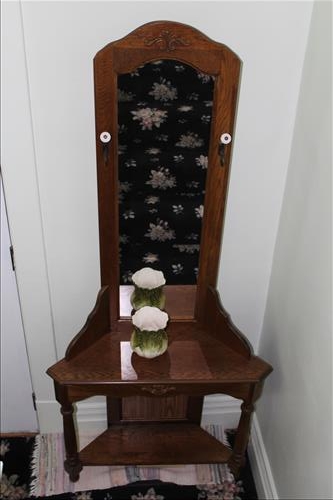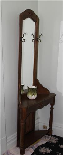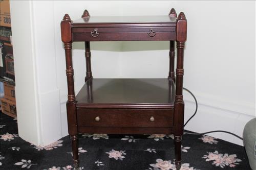 Furniture & Appliances: Drop Leaf Table w/2 Chairs, 16 Pane China Cupboard, Dining Room Table w/6 Chairs & Leaf, Mahogany Side Stand, 2 Small Side Stands, Wing Back Chairs, Duncan Phyfe Drop Leaf Table, Love Seat, Oak Hall Tree, Small Half Moon Table, Hand Painted Mirror, Cherry Night Stand, Twin & Full Beds, Thomasville Bedroom Set: Full Bed, 5 Drawer Highboy Dresser & 6 Drawer Dresser w/Mirror; Night Stands, Amish Foot Stool, Jenny Lind Spindle Bed, 3 Drawer Art Deco Style Side Stand, Lane Cedar Chest, Affinity Front Loader Washing Maching, Whirlpool Electric Dryer, GE Dehumidifier, Chest Freezer, Outdoor Furniture Set & More...