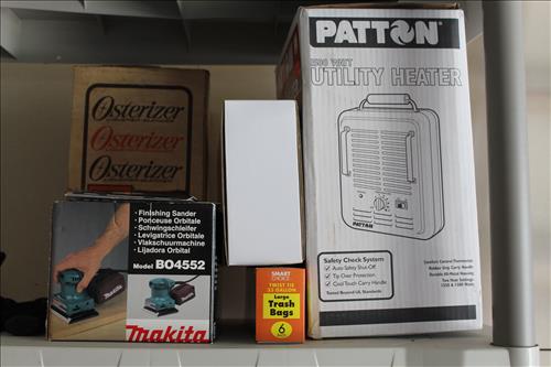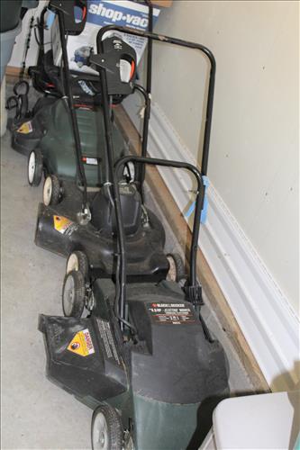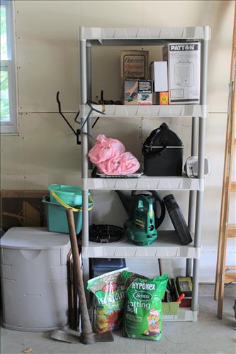 Tools & Equipment: B & D Electric Mowers, Shop Vac, Garden & Hand Tools, Wood Step Ladders, Small Dollie, DeWalt Drill, Makita Palm Sander, Work Zone Heater, Suncast Plastic Storage Chests & Shelving Units & More...