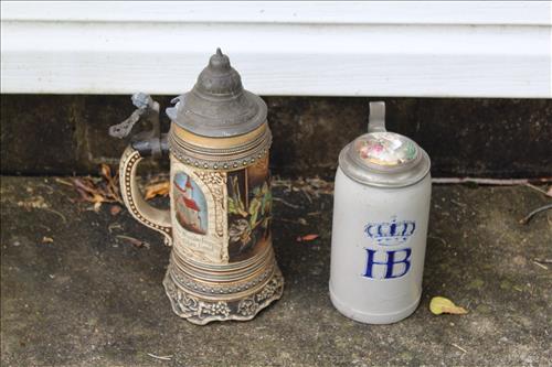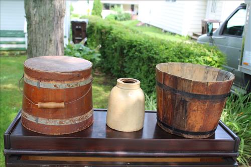 Antiques & Collectibles: Hoosier Cupboard w/Double Flour Bins & Spinner Spice Rack, Wood Buckets, Crock, Macey Barrister Book Case, Advertising Signs; Interstate & Deka Batteries & Tilt-A-Whirl; 7 Up Memorabilia, Water Tippler, Electrified Hanging Gas Lamps, Cast Dachshund Bank, Clocks: United Sailboat, Lux "Good Luck", Spartus Cowboy Boot, Welby by Elgin Mickey Mouse, Gilbert Mantle Clock & Coo Coo Clock; Caboose Lamps, Mission Style Book Case, Reverse Painting, Framed Religious Painting on Tin, Steins, Copper Kettle, Early Basket, Ceramic Spittoon, Radio Station Advertising Cards, Rolling Pins, Phoenix Vase, 15 Cent Classics Illustrated Junior Comics, Lightning Rod, Brass Bell, Old Torch, Hawaii Ukulele, Vintage Alarm Clocks & Cameras, US Mail Truck Bank, Oil Lamp, Binoculars, Indian Dolls, Cast Indian Bank, Ellwoodian Year Books - '36, '38 & '41; Brass Animals, "The American Scale", Wash Board, Wedding Ring Quilt, Hall Pitcher, Crackle Glass Pitcher, Banded Crock Pitcher, Record Albums, Chenille Bedspread...