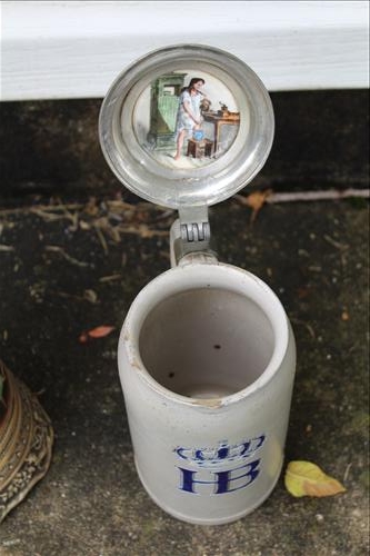 Antiques & Collectibles: Hoosier Cupboard w/Double Flour Bins & Spinner Spice Rack, Wood Buckets, Crock, Macey Barrister Book Case, Advertising Signs; Interstate & Deka Batteries & Tilt-A-Whirl; 7 Up Memorabilia, Water Tippler, Electrified Hanging Gas Lamps, Cast Dachshund Bank, Clocks: United Sailboat, Lux "Good Luck", Spartus Cowboy Boot, Welby by Elgin Mickey Mouse, Gilbert Mantle Clock & Coo Coo Clock; Caboose Lamps, Mission Style Book Case, Reverse Painting, Framed Religious Painting on Tin, Steins, Copper Kettle, Early Basket, Ceramic Spittoon, Radio Station Advertising Cards, Rolling Pins, Phoenix Vase, 15 Cent Classics Illustrated Junior Comics, Lightning Rod, Brass Bell, Old Torch, Hawaii Ukulele, Vintage Alarm Clocks & Cameras, US Mail Truck Bank, Oil Lamp, Binoculars, Indian Dolls, Cast Indian Bank, Ellwoodian Year Books - '36, '38 & '41; Brass Animals, "The American Scale", Wash Board, Wedding Ring Quilt, Hall Pitcher, Crackle Glass Pitcher, Banded Crock Pitcher, Record Albums, Chenille Bedspreads, Doughboy Corelle Plate, 10K Tennis Bracelet, Sterling Silver Jewelry & More...