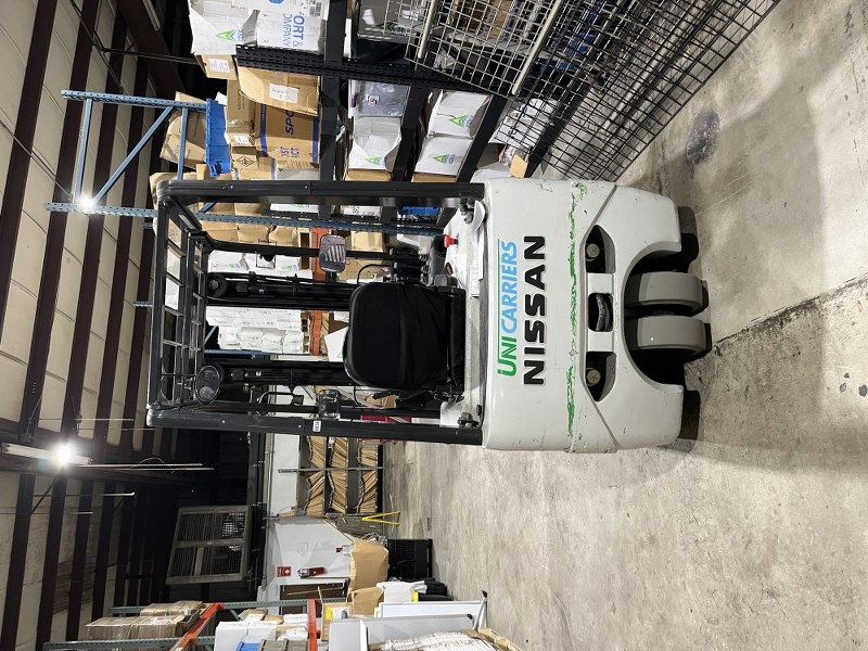 367 - NISSAN UNICARRIERS TRIPLE MAST ELECTRIC FORKLIFT HOURS: 5884.2 WITH BATTERY CHARGER (RUNS AND OPERATES)
