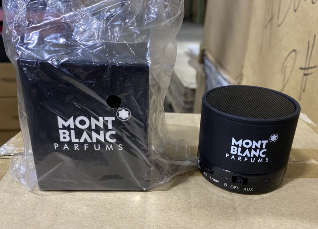 346 - PALLET DISPLAYS AND PROMOTIONAL ITEMS DOLCE GABANA DISPLAYS, DG SNIFF BLOTTERS, DG PREMIUM BOXES, (150)+/- SISLEY SAMPLE PACKS, ASSORTED ELIZABETH ARDEN AND OTHER SKIN AND HAIR CARE PRODUCTS, (12)+/- MONT BLANC BLUE TOOTH SPEAKERS, (100)+/- BURBERRY (50)+/- CLARINS KEY CHAINS, (12)+/- MARC JACOBS TOWELS, (9)+/- ISSEY MIYAKE MEN'S BAGS, ASSORTED DISPLAYS AND FRAGRANCE BLOTTERS: NARCISO RODRIGUEZ, ISSEY MIYAKE, DIOR (COUNTS ARE APPROXIMATE +/-)
