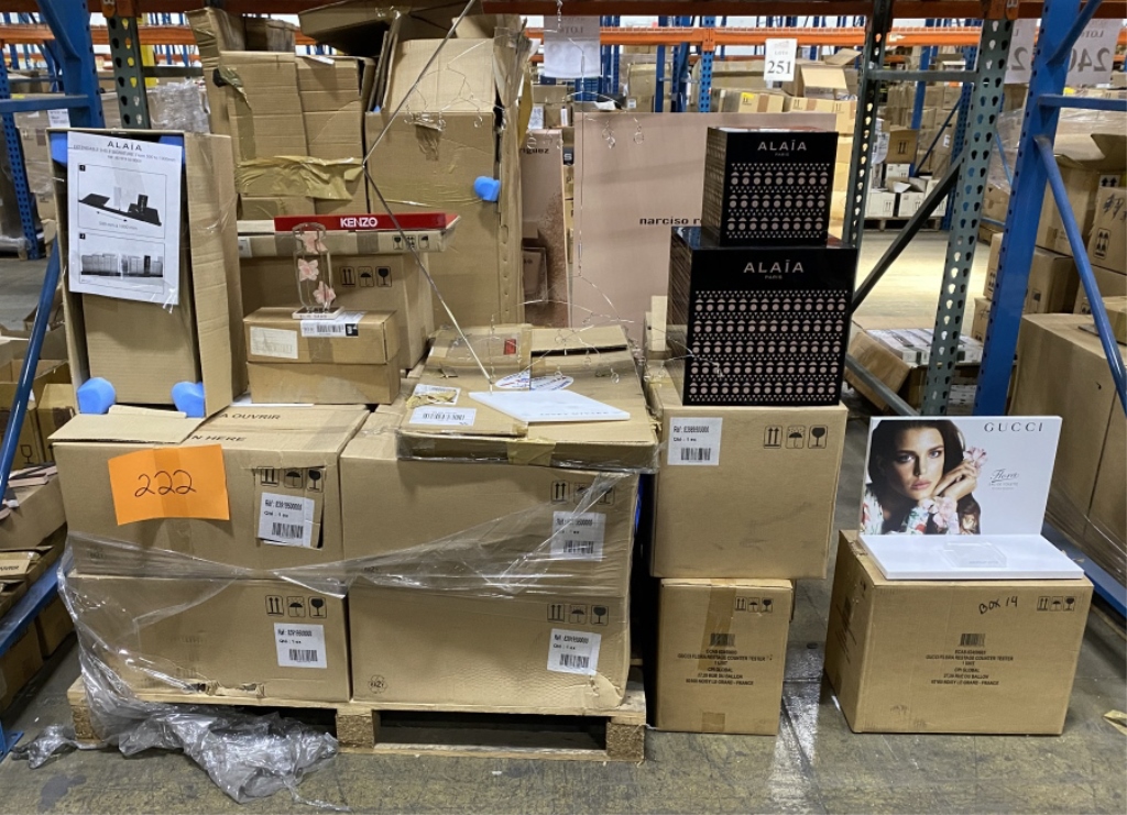 Sale will consist of: Huge inventory of Paul Mitchell assorted hair care products, name brand fragrances, promotional gift items, contemporary style office furniture, office cubicles, computers, electronics, Peter Max art, Romero Britto art, beautiful Buddha statue, pallet racking, warehouse equipment and other related items. Brands include: Dior, Dolce & Gabbana, Bebe, Lacoste, Jimmy Choo, Givenchy, Lolita Lempicka, Marc Jacobs, Narcisco Rodriguez, Juicy Couture, Calvin Klein, Issey Miyake, Kenzo, Elie Saab and much more!