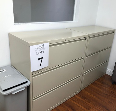 7 - 3-DRAWER LATERAL FILE CABINETS INCLUDES HANGING FILES INSIDE