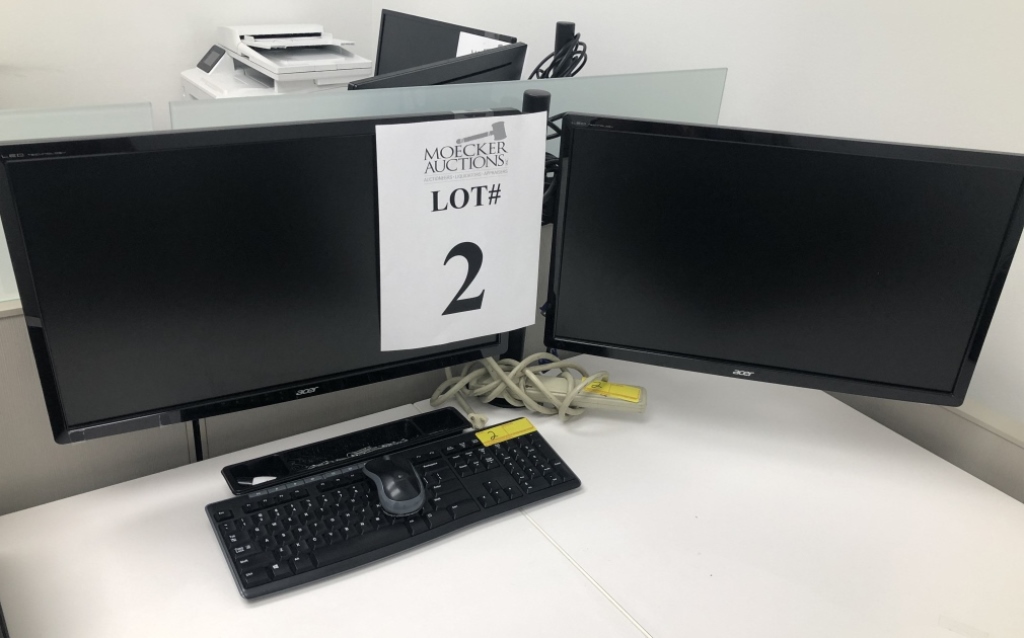 2 - ACER 23" MONITORS ON ADJUSTABLE TELESCOPING STAND, INCLUDES KB, MOUSE, POWER STRIP