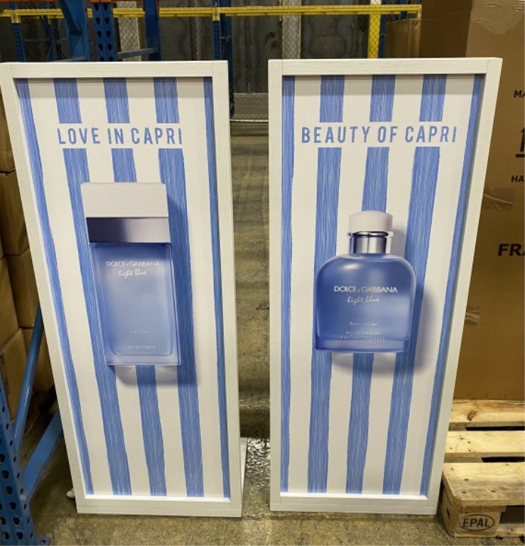 399 - DOLCE GABANA LIGHT BLUE DISPLAYS MEASURES 51" T X 39 1/2" W X 12" DEEP AT BASE