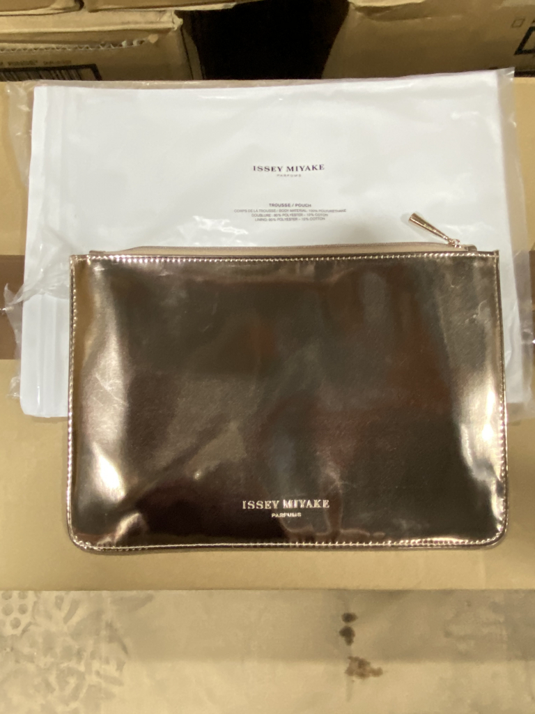 344 - LOT ASSORTED PROMOTIONAL ITEMS INCLUDING (40)+/- JIMMY CHOO CARRY BAGS, (100)+/- LOLITA LEMPICKA MAKE-UP BAGS, (6)+/- BOUCHERN MAKE-UP BAGS, (6)+/- CLARINS MAKE-UP BAGS, (7)+/- LACOSTE MAKE-UP BAGS (COUNTS ARE APPROXIMATE +/-)