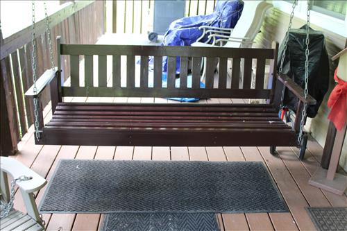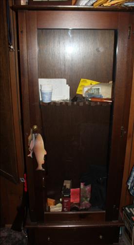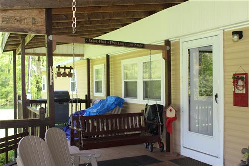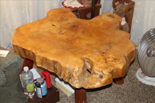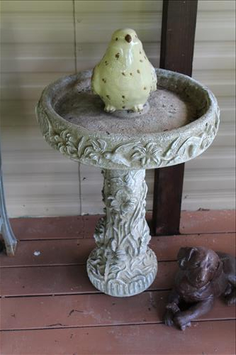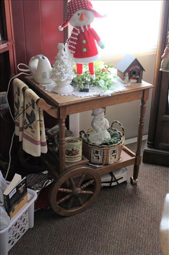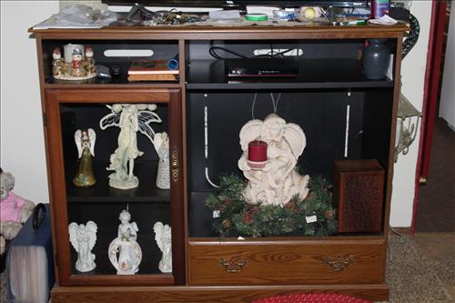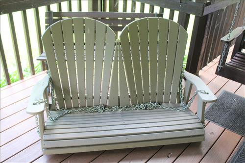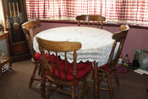 Furniture:7' Dual Reclining Light Brown Sofa, Moss Green Recliner, Amish Rocker, Live Edge Wood Coffee Table, 42" TCL Roku Flat Screen, Kitchen Table w/ 4 Chairs, Wood Tea Cart, Glass Front Gun Case, Roll Top Desk, Outdoor Furniture: 42" Square Glass Top Table & 4 Chairs, 66' Wood Porch Swing, 4 Park Benches, 53" Resin Swing; Cement Bird Feeders & More.