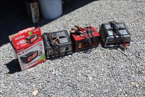 Equipment & Tools:Craftsman ZT 7000 Zero Turn Mower & Husqvarna YTH 150 Hydrostatic 42" & Craftsman 18.5 HP Twin 46" Riding Mowers, Square D Class 9013 Air Compressor, Chain Saw: Husqvarna 365 & 61, Practica & Craftsman; Ground Work Metal Trailer, Weed Wackers: Murray, B/D & Weed Eater, Heavy Duty Ramps, Alaskan MKIII Chainsaw Attachments, Werner 8' Fiberglass Ladder, Lincoln Elec Lincwelder AC 225 amp, Briggs & Stratton 8HP Tillers, Craftsman: Jig Saw,(2) Multi Tool Kits:Trim Saw, Cordless Drills, Flash Lights W/ Chargers; Drill/Driver, Lg. Socket Set, 10" Radial Arm Saw, Bench Grinder, Table Saw, Rachets & Wrenches, Angle Grinders, & Disk Sander; B/D: Impact Gun, Mouse Sander, Drill & Scroll Saw; Ryobi Router, Dewalt & Master Mechanic Circular Saws, Skil Biscuit Cutter & Orbital Saw, MVP 12V Pro Pull Winch, Worx Cordless Drill, Hitachi Air Stapler, Porter Cable Reciprocating Saw, Multi Tool Dremel, Router Bits, Grip & C Clamps, Wagner Paint Sprayer, True Temper & Stanley Wheel Barrels, Crow Bars, Chicago Cordless Drill, 6.5HP 20 Gal Air Compressor, Delta 10" Mitre Saw, Jet 12" Band Saw, S-K Socket Set, Foley Mfg. Co Chain Saw Sharpener, Champion Heavy Duty 16 Speed Drill Press, Delta Combo 4" Belt/6" Disk Sander, Central Machinery Heavy Duty Grinder, Yard Roller, Chanis, Hooks, Pull-Along, (3) Schumacher & Century Battery Chargers, Stanley tool Boxes Belsaw Grinding Wheel, 6- 10W 30 Penzoil 5Qt Jugs Oil & More.