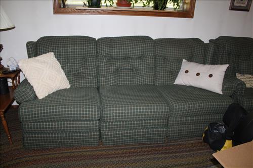 Furniture, Household & Misc:2000 Frigidaire Upright Freezer, Singer Simple 3116 & Brother Lock 925D Serger Sewing Machines, Dell Optiplex 3020 Tower & View Sonic 22" Computer Monitor, Samsung DVD Player, Flat Screen TV, Hoover Spin Scrub 50 Carpet Cleaner, Corelle 70's Crazy Daisy Dishes, Country Style Dual Reclining Green Sofa & Arm Chair, Computer Desk, 4' Pine Bench, Dresser w/ Mirror & Matching Highboy, Misc Small Furniture & More.