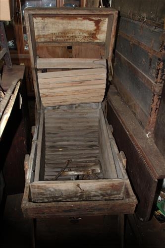 Vintage Furniture & Wood Works: Unique Architectural Items, Counter Top Show Cases, Barn Shutter, Wood Tool Boxes, Wood Swing, Beds, Retro & Art Deco Chairs, Drop Leaf Tables, Cabinets, Jelly Cupboard, 25 Pane Windows, Doors, Plant Stands, Cedar Chests, Buffets, Dressers, Plant Stands, Parlor Tables, Tables, Wash Stand, Large Variety of Wood Chairs, Treadle Sewing Machines, Wood Washing Machine, Church Pews, School Desks, Stain Glass Windows & Door, Many Pictures and Early Frames, Medicine Cabinets, Wood Ladders & MUCH MORE TO BE UNCOVERED BEFORE AUCTION DATE!